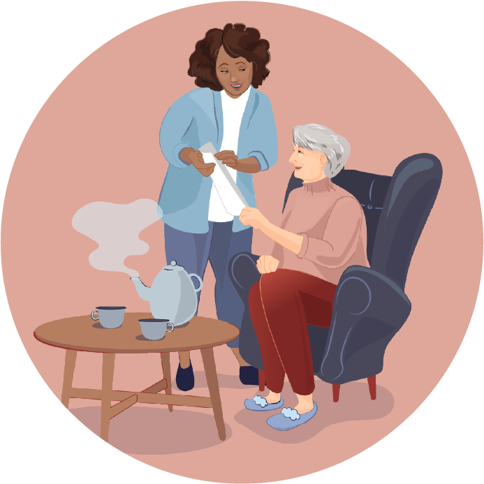 • Provides respite care at home for a full-time carer, allowing them to have some time to themselves.